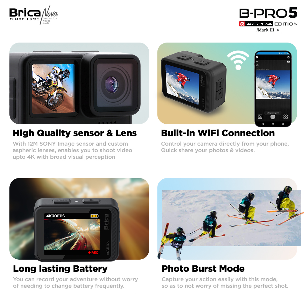Wvith 12M SONY Image sensor and custom aspheric lenses, enables you to shoot up to 4K video with broad visual perception.