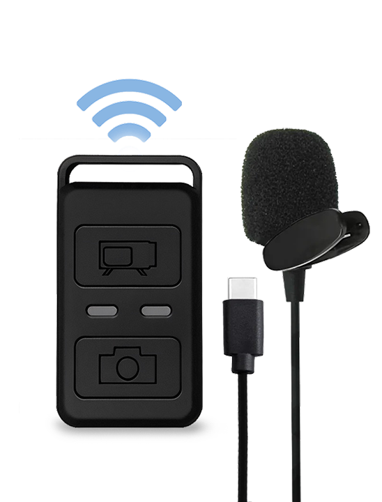 Control your camera and record your voice remotely using the included 2-in-1 remote + wireless mic