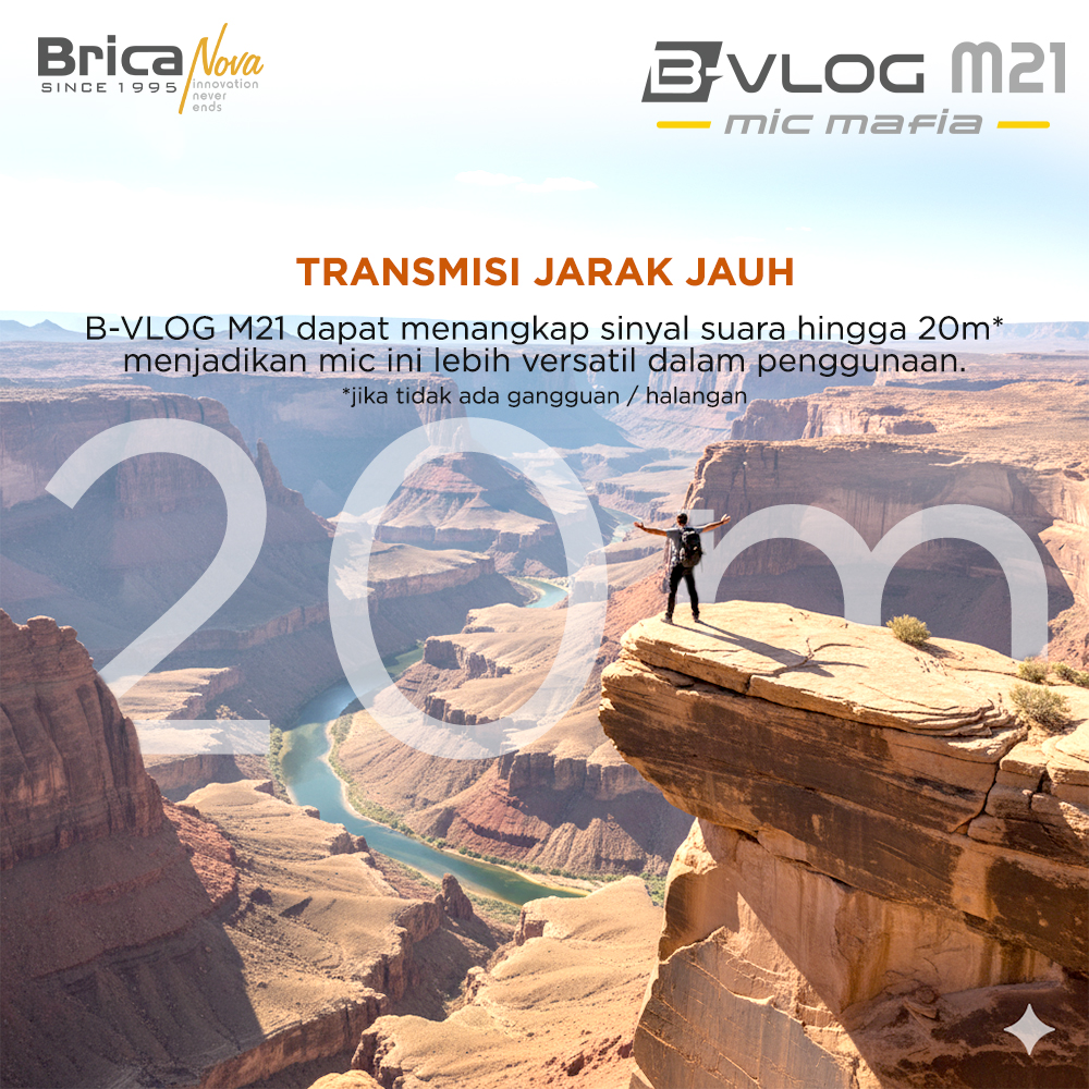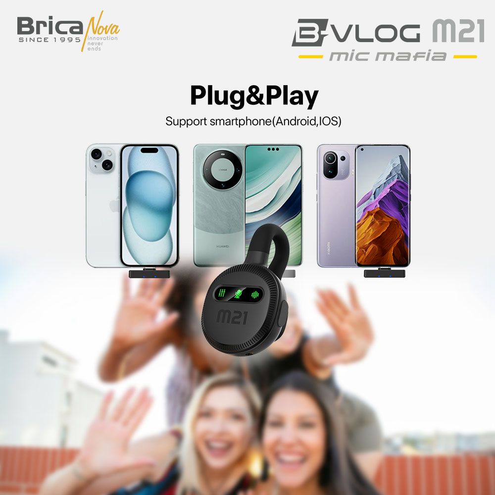 B-VLOG M21 can capture sound signal transmission up to 20m range (no interference / blockage) making it more versatile when using it to create your contents.